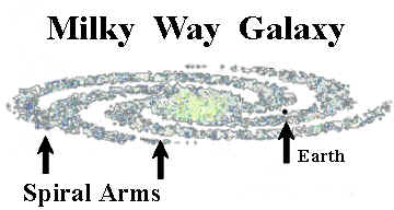between the spiral arms permits us to see other parts of our galaxy and several hundred billion other galaxies in the universe. Earth sits safely on a “window seat” that provides a clear view of the universe.